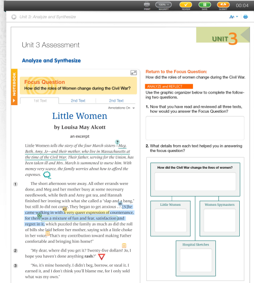 I absolutely love to convert a print Teacher Edition into xml/json learning objects for reuse online. This project allowed me to incorporate so many of the text interactivities that I have advocated for in the past including: displaying the Essential Question and Purpose for Reading, inclusion of Stop & Think points, Modeled Think-Alouds, Strategy Checklists, Interactive Graphic Organizers, Tag Text Features, Interact with the Text, Take and Refer to Notes, Upload Files.